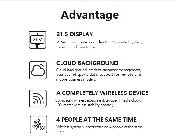 4) No need to spray water, no need to warm up before ems training.