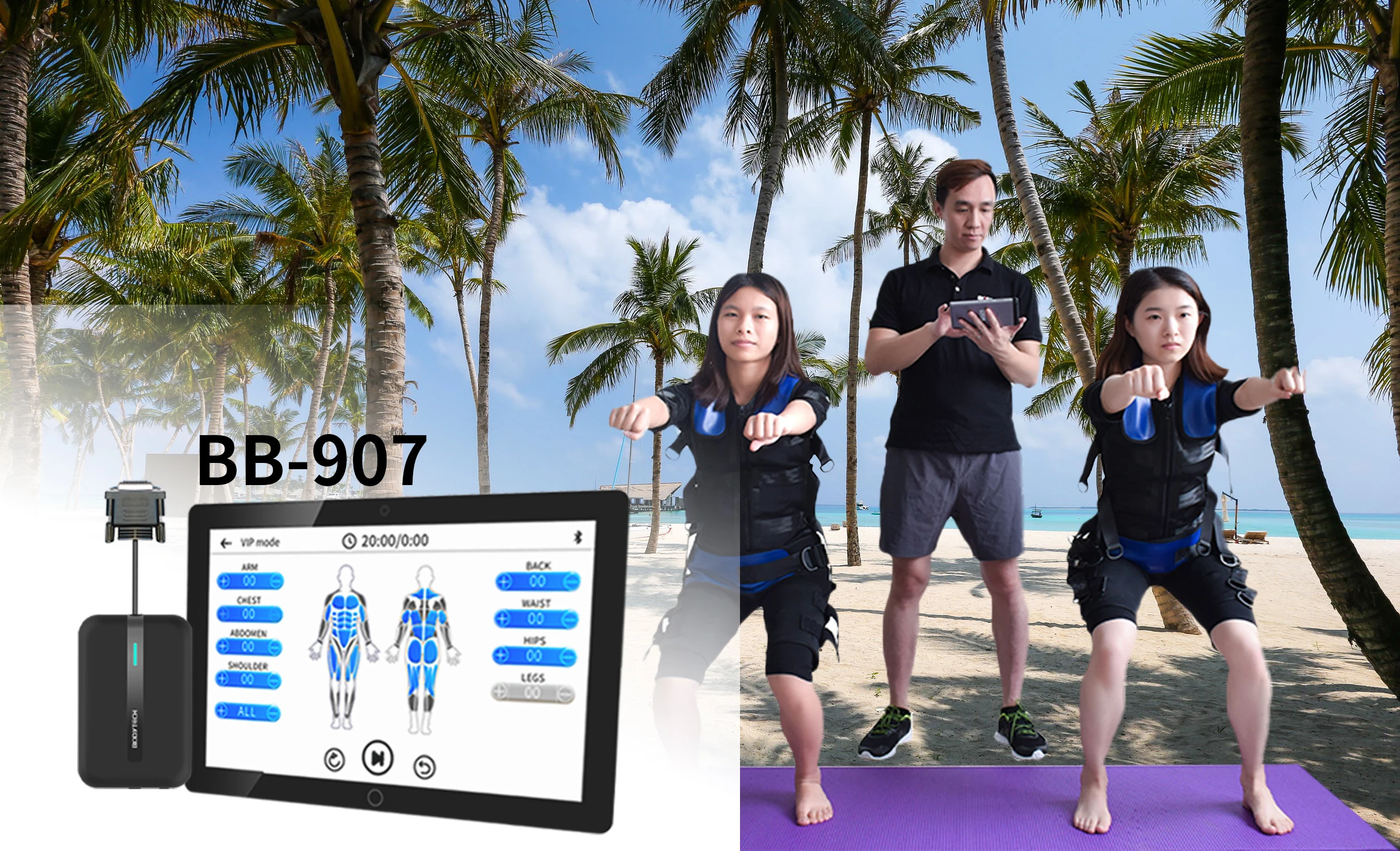 Combining it with our Energy box device you can train without distance limits between the Energy Box and clients. Explore the exciting possibilities our One-Many function has to offer: maximize the number of clients without having one workout session in the same room.