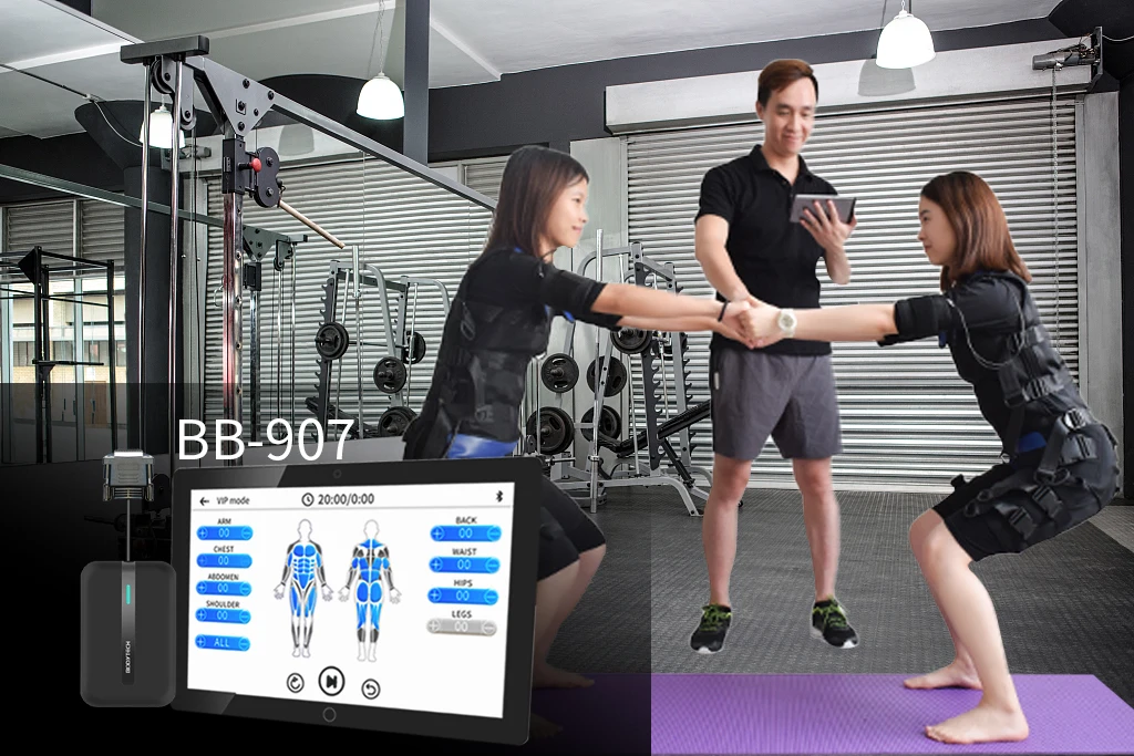 Professional ems gym equipment go beyond group fitness to provide you a semi-private training experience, which means there are far less people in our facilities at any given time—compared to a gym. EMS muscle toning workout gym equipment and certified personal trainers supervise your entire session, and you’ll spend considerably less time in a studio (under 30 minutes) to get a great workout.